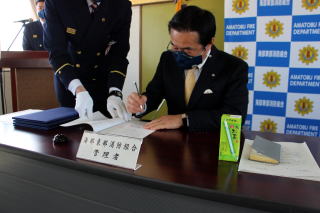 令和3年3月18日(木)に海部東部消防組合消防本部2階講堂において、大規模災害時における応援に関する協定締結式を開催しました。