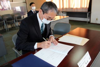 令和3年12月23日(木)に当組合講堂において、西尾レントオール株式会社中部支店と大規模災害時におけるレンタル資機材の供給に関する協定締結式を開催しました。