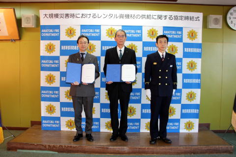 協定の内容は、大規模災害時に災害対策活動を実施するにあたり、必要な資機材(仮設トイレや発電機等)を可能な範囲においてレンタル供給していただくものです。